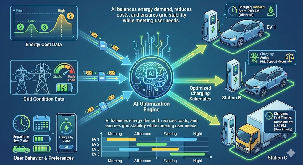 The AI revolution in EV charging leverages several sophisticated technologies and algorithmic approaches: