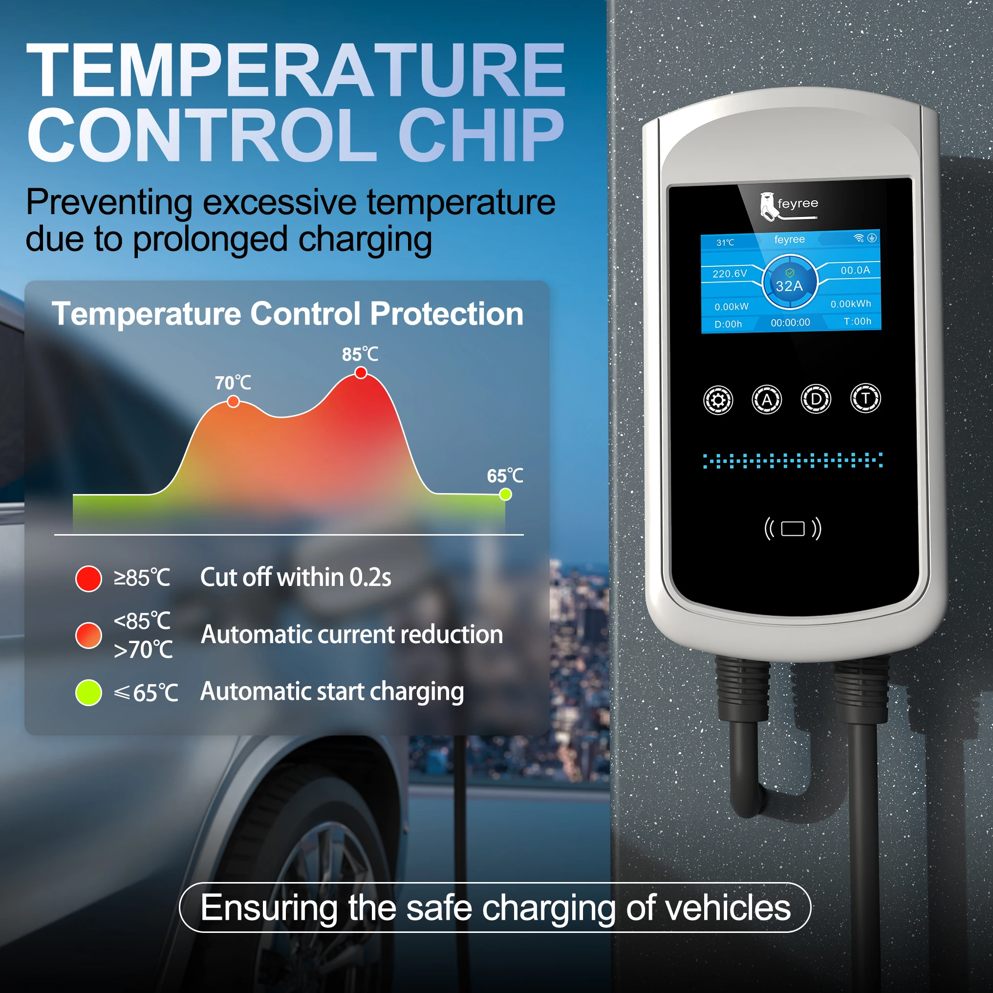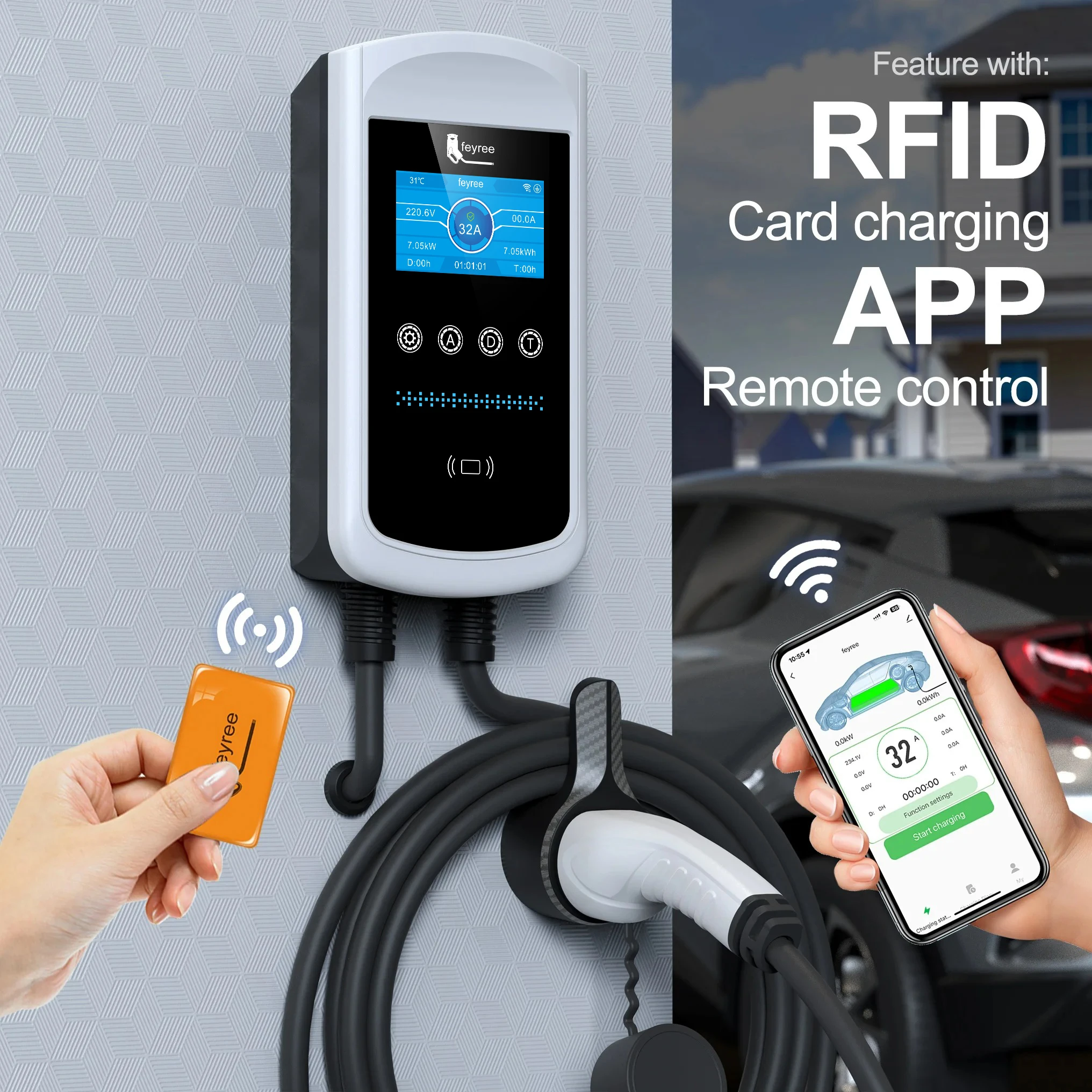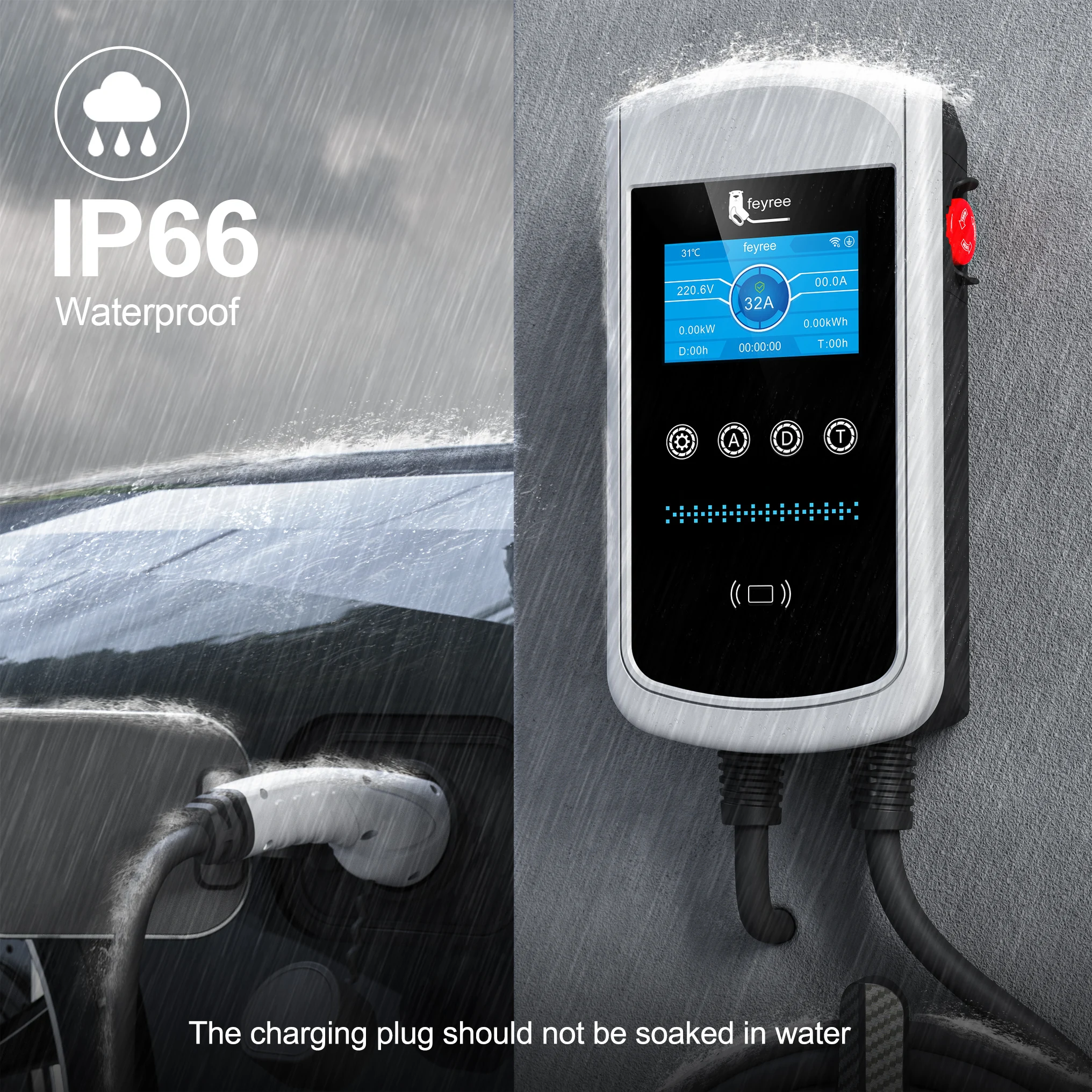 - Change the current: 8A/10A/13A/16A/20A/25A/32A adjustable (7kw/22kw)